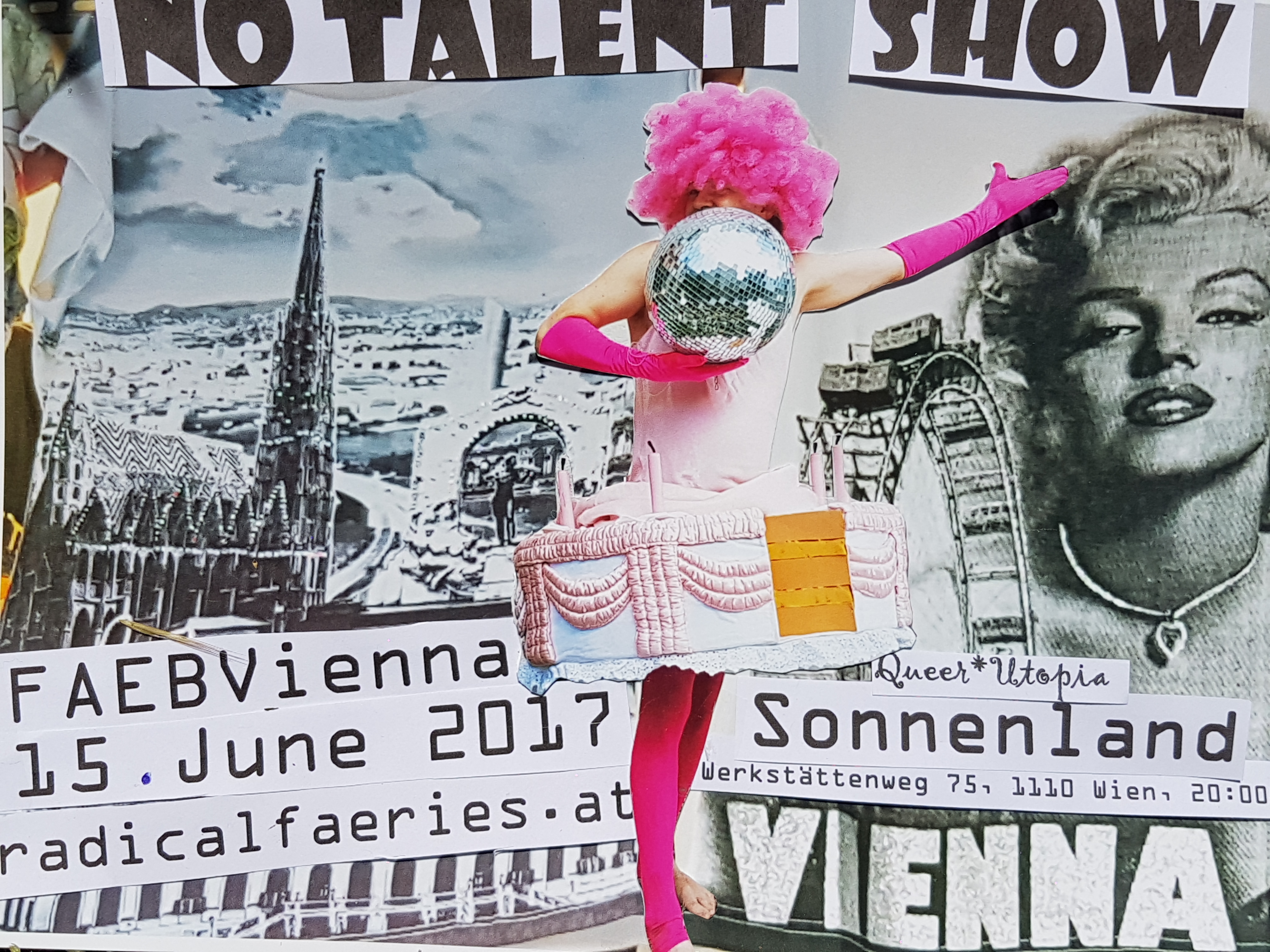 I had a dream – ein Experiment, etwas völlig Neues zu wagen, ein spontanes Treffen auszurufen, wo sich die Feen da und dort begegnen würden, um gemeinsam ihren Spirit auszuleben, gemeinsam glücklich und eine Familie zu sein, und vor allem die Stadt nicht nur mit Gay Kommerz und Gay Mainstream überrollen zu lassen, sondern auch die Chance zu geben, Gay Spirit zu erleben und zwar einen solchen, wie ich ihn durch die Radical Faeries kenne, an meinem Heimatort immer herbei ersehnt habe, nämlich ein Bewußtsein aller Queeren, für einander da zu sein, das Bedürfnis der Feen, einander das zu geben, was du sonst nicht in dieser Stadt bekommst, einfach einander Solidarität und Empathie zu zeigen. Sind diese Werte der Feen in Wien auch anderen wichtig oder werden sie nach wie vor von Vorurteilen überlagert? Nehmen die anderen dies und uns überhaupt wahr? Haben wir hier überhaupt revolutionäres Potential – heißt, regen wir zum Umdenken an? Können wir uns von unserem gängigen Leben losreißen, wollen wir uns hier überhaupt mit anderen Gleichgesinnten treffen – wollen wir diese einmalige Chance eines geschützten Raumes in Wien wahrnehmen? Ich machte mir nicht viele Gedanken, ob dies funktionieren würde, – ich hatte einfach das Vertrauen, dass es gelingen könnte, denn mein Herz hielt mich nicht davon ab und sagte mir, es ist OK, dass du das machst. Es spielen so viele positive Faktoren gerade in dieser Woche zusammen, du würdest dir dein Leben lang nicht verzeihen, es nicht einmal versucht zu haben: Wir hatten ein wahres kleines Märchenland – eine sonnige Oase mitten in der Stadt zu Verfügung – 3 S-Bahn Stationen von Wien Mitte entfernt. Wir hatten einen Feiertag und das Festival Queer*Utopia, wir hatten die Vienna Pride und die Regenbogenparade, den Lifeball, die Wiener Festwochen und das queere Filmfest Identities. Ich dachte, das würde sich alles irgendwie perfekt ergänzen, aber im Endeffekt fand doch zuviel Queeres in Wien innerhalb von einer Woche statt. Der erste Call war noch voller Klischees über Wien, die viele Feen aus der ganzen Welt nach Wien locken sollten – das hat nicht funktioniert. Mit dem zweiten Call sprach ich alles an, was sich Feen von einem Treffen idealerweise wünschen. Ich wollte meinem Land einmal diesen Spirit vermitteln, worum es uns eigentlich geht und dieses Bewusstsein sollte sich für immer in der österreichischen LGBTI Szene und darüber hinaus heilend verankern, denn dieser Call wurde auch von den Veranstaltern der Viennapride und Stonewall öffentlich auf Facebook übernommen und leuchtete dort dankenswerterweise für eine Woche, sodass es auch jeder lesen konnte. Ich war immer für völlige Informationstransparenz und gegen die Abschottung der Faerie Tribes nach innen und außen, soweit es nicht die persönlichen Daten betraf. Nur dann erlebe ich die Einheit der Menschheit und der Lebewesen und dass die Feen untereinander gleichberechtigt sind und habe nicht das Gefühl, man wolle immer etwas voreinander verbergen. Es hat mich zwar einige Überzeugungsarbeit bei den Veranstaltern gekostet bis sie uns aufnahmen, aber zu guter Letzt konnte dann jeder, der mit offenen neugierigen Sinnen durch die Welt geht, uns geistig aufnehmen und seinen Horizont erweitern. Diese Tatsache allein hat in mir die Überzeugung geweckt, dass dies alles nicht umsonst war, denn wie schon Marina Abramovic in ihrer inspirierenden Autobiographie sagte, das Wichtigste ist, die Bewusstseinsebene zu schaffen für das worum es uns und bei diesem Gathering ging. Ich wollte nicht mehr nur die Feen von diesem Gathering überzeugen, sondern vor allem der Welt die andere Seite des Gay Spirits nahe bringen, so wie sie radikale Feen zelebrieren, nämlich die queere Geschichte von der Urzeit bis in die Zukunft, angefangen, so wie wir veranlagt geboren sind, über die Gegenwart, wo wir nicht weiterkommen, wenn sich jeder nur in seiner persönlichen (Medien-) Blase zurückzieht und wir unser Herz nicht gegenseitig öffnen und unsere Verletzungen weiter mit uns herumtragen, bis in die Zukunft, in der wir uns alle eigentlich eine fa(e)belhafte Welt wünschen, ohne Diskriminierung, Verstecken müssen und Gewalt, wo jeder den lieben darf, den er/sie will – aber davon sind wir auf dieser Welt noch weit entfernt. Auch Faeries sind in Österreich eine unterdrückte Minderheit und vielen ist das auch egal. Sie sehen die Notwendigkeit nicht, sich nach außen hin zu engagieren und leider auch zu wenig füreinander. Die Not zur Wende haben viele hier nicht, denn ein radikales Umdenken, das in eine Engagement und wirkliches Handeln mündet, das gibt es kaum in Österreich. Da sind uns viele Länder voraus. Aber trotz dieses Bewusstseins blieb ganz bei mir und ließ mich nicht abschrecken dieses Gathering auszurufen. Ich hörte den Ruf meiner queeren Vorfahren es zu wagen, denn mein natürlicher Vater hätte alles dazu getan, mich davon abzubringen. Und daher war ich dankbar und froh, dass die Self Sightseeing Company meinen Vorschlag eines 7-tägigen Treffens mit 4 Tagen am Sonnenland akzeptierte und nachdem Mama Pixie mir zugesagt hatte zu kommen, war mir klar, dass ich es machen musste. Welch eine Chance für Wien und die Feen in ganz Mitteleuropa! Einen Dämpfer gab es nur aus den eigenen Reihen, denn keiner der hier lebenden Freunde war bereit, für einige Tage andere bei sich übernachten zu lassen. ..und so war unser Flat mit 6 Feen sehr eng besetzt und fungierte gleichzeitig als Drehscheibe.